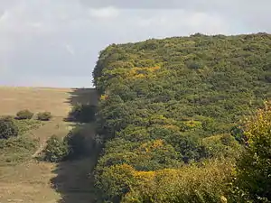 ![]() Culmea dealului Runc, acolo unde se află granița dintre județele Bacău și Neamț | |