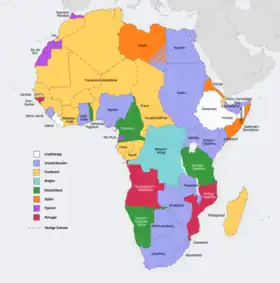 În timpul luptei pentru Africa de la finalul secolului al XIX-lea, puterile vest-europene au împărțit Africa și resursele pe care le avea în partiții politice la Conferința de la Berlin din 1884-85.[2][3] Până în 1905, aproape tot controlul pământului african a fost revendicat de guvernele din Europa de Vest, cu singurele excepții fiind Liberia (care a fost colonizată de către foștii sclavi afro-americani) și Etiopia (care a rezistat cu succes colonizării de către Italia).[4] Marea Britanie și Franța au avut cele mai mari colonii, dar Germania, Spania, Italia, Belgia și Portugalia, de asemenea, au avut colonii. Ca urmare a colonialismului și imperialismului, majoritatea continentului african și-a pierdut suveranitatea și controlul resurselor naturale, cum ar fi: aurul și cauciucul. În urma conceptului cunoscut sub numele de Povara omului alb (White Man's Burden), unii europeni care au beneficiat de pe urma colonizării, au simțit că a fost nevoie de colonizare pentru a-i civiliza pe africani.[5][6]