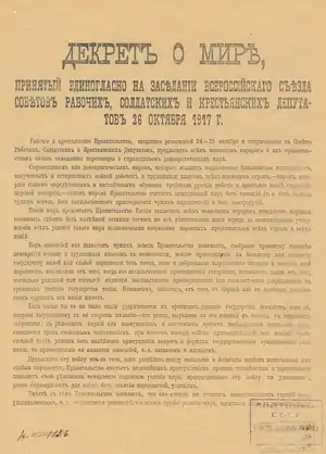 Decretul asupra păcii (în rusă Декрет о мире/ Dekret o mire), scris de Vladimir Ilici Lenin, a fost adoptat la cel de-al doilea Congres al Sovietelor, Muncitorilor, Soldaților, Deputaților și Țăranilor din 26 octombrie 1917, desăvârșind cu succes Revoluția din Octombrie. Este actul fondator al noii ordini proletare. A fost publicat în ziarul Izvestia la 27 octombrie 1917, și cerea printre altele ieșirea separată din primul război mondial