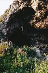 În versanții recifului s-au format mai multe grote și nișe, care au adăpostit temporar oameni preistorici și animale din diferite ere geologice. În una din grote, la circa 100 m de la extremitatea de nord a recifului, au fost identificate urmele unei stațiuni paleolitice cu urme de existență ale diferitor culturi umane preistorice: unelte din silex, oseminte fosile de animale, amprente de vetre de foc etc.[3] Grota are trei săli, cu o lungime totală de 49 de metri și o lățime de 5-9 metri.[4][5]