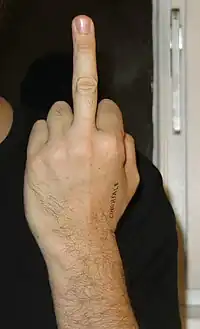 În occident, arătarea degetului mijlociu (cu sensul de a arăta cuiva degetul mijlociu) este un cunoscut gest obscen făcut prin întinderea degetului mijlociu (care este cel mai lung dintre degetele mâinii), în timp ce celelalte degete sunt strânse mai mult sau mai puțin. Degetul mijlociu reprezintă în acest caz organele genitale masculine, de unde vine denumirea lui latină digitus impudicus sau digitus infamus. O variație cunoscută include întinderea degetului mare, care semnifică "du-te dracului".