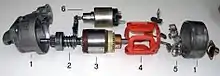 Demarorul este format dintr-un motor hidraulic cu pistoane axiale, care asigură turația necesară anclașării cu inelul dințat de pe volant și cuplul necesar pornirii.[11]