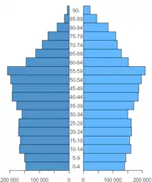 peste 64 de ani: 17.0% (351,180 bărbați, 517,530 femei)