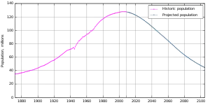 În 1989 11,6% din populație era de peste 65 de ani, dar s-a calculat că această cifră va fi cca. 40% în 2055[4]. Această îmbătrânire a populației va avea loc datorită natalității scăzute combinată cu mortalitate scăzută.