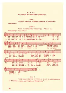 | Imn național al | Republica Socialistă Macedonia Macedonia de Nord |