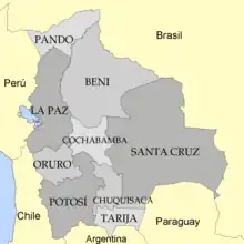 1: în km2, Sursa: http://www.ine.gov.bo Arhivat în , la Wayback Machine.