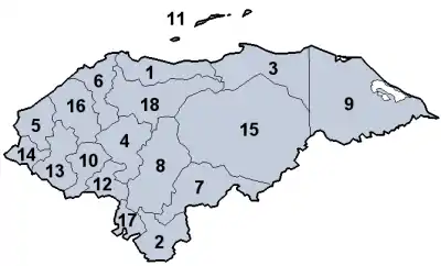 Hondurasul este împărțit în 18 departamente (departamentos).
