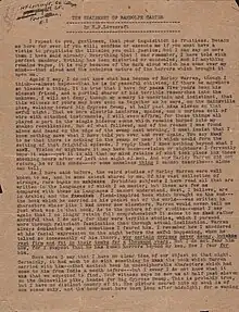 „Depoziția lui Randolph Carter” este mărturia la persoana întâi a personajului titular, care a fost găsit rătăcind prin mlaștină într-un șoc amnezic. În declarația sa, Carter încearcă să explice dispariția tovarășului său, ocultistul Harley Warren(d).