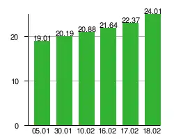 La 19 februarie Banca Națională a anunțat un curs oficial de 23,60 lei pentru un euro, cu 41 de bani mai puțin decât în ziua precedentă. Moneda americană s-a depreciat cu 24 de bani și a fost cotată cu 20,75 lei[7]. Aceasta fiind astfel prima zi de apreciere a valutei naționale după o perioada succesivă de deprecieri.