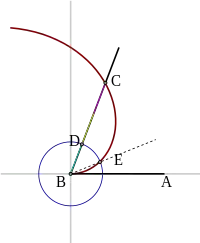 Să presupunem că unghiul ABC trebuie împărțit în trei părți egale. Împărțim segmentul BC în trei părți egale și găsim că BD este egal cu o treime din BC. Desenăm un cerc cu centrul în B și de rază BD. Presupunem că cercul cu centrul în B intersectează spirala în E. Unghiul ABE este egal cu o treime din unghiul ABC.[4]