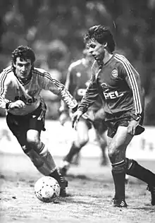 Hans-Uwe Pilz de la Dynamo Dresden, și Olaf Thon de la Bayern München în Deutschland Cup