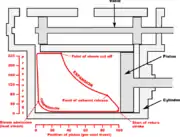 După nivelul presiunii se poate ridica diagrama întregului ciclu, sau, folosind un arc slab și un limitator de deplasare (respectiv o scară mare), doar porțiunea în care are loc la motoare schimbul de gaze, așa-numita diagramă de pompaj.[8]
