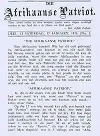 Die Afrikaanse Patriot a fost primul ziar de limbă afrikaans. Primul număr a fost publicat în Paarl, la 15 ianuarie 1876. Inițial revistă lunară, a devenit săptămânal doi ani mai târziu.[1]