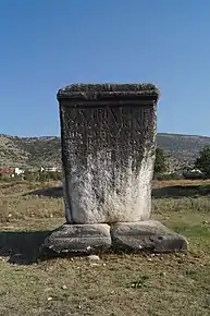 Numele sitului provine din limba turcă și înseamnă „piatră verticală, obelisc”. Echivalentul exact din limba greacă al toponimului este Ορθόπετρα / Orthopetra, cu același înțeles. Acesta se referă la monumentul (o stelă gravată) ridicat în cinstea ofițerului roman C. Vibius Quartus, înmormântat probabil în acest loc de pe marginea drumului Via Egnatia, care trecea chiar pe la poalele colinei.