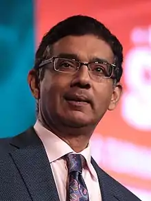 Dinesh Joseph D'Souza (n. , Mumbai, Maharashtra, India) este un indian-american(d) de dreapta,[8][9][10] comentator, autor, regizor și adept al teoriilor conspirative. D'Souza a redactat numeroase lucrări, unele dintre ele fiind bestselleruri pe lista New York Times.[11][12]