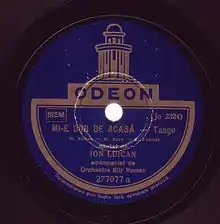 | 1938 | 277 340 | shellac, 25 cm, 78 RPM | Tango miraj (Ion Vasilescu / Eugen Mirea) Habar n-ai tu (Ion Vasilescu / Eugen Mirea) | orchestra de dans Odeon |