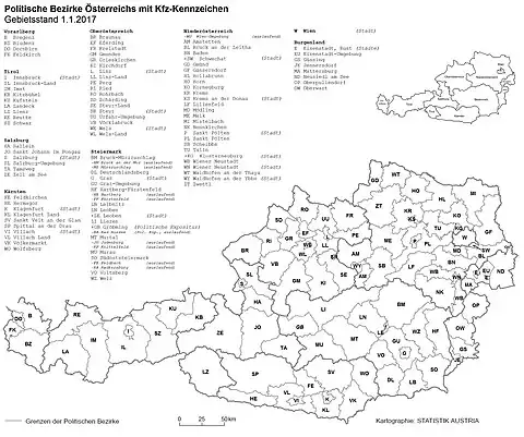 Landurile Austriei Bundesland | Număr de înmatriculare | Suprafată in km² |