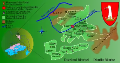- Bistrița în germană Bistritz, în maghiară Beszterce.