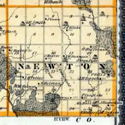 Primul locuitor permanent al Newton Township a fost Joseph Austin, care și-a construit o casă la marginea unei lizieri de pădure, cândva înainte de sau în anul 1847. primele alegeri locale au fost organizate în partea sudică a districtului în august 1854. Majoritatea locuitorilor timpurii fuseseră irlandezi imigrați din Irlanda, atunci parte a Regatului Unit.[1]