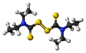 Disulfiramul (denumiri comerciale: Antabuz, Antalcol) este un medicament utilizat ca tratament adjuvant în curele de dezintoxicare ale alcoolicilor cronici.[11] Medicamentul produce o sensibilitate acută și foarte neplăcută la etanol și funcționează prin inhibarea enzimei acetaldehid-dehidrogenaza, ceea ce duce la instalarea efectelor tipice de mahmureală imediat după consumarea alcoolului.