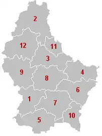 Cantoanele sunt divizate în comune, cel mai de jos nivel administrativ al Luxemburg-ului.