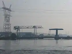 Docul, cu podul Willems în plan apropiat și terminalul de containere în plan îndepărtat | |