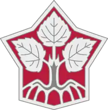 Consiliul național al ligii Domowina și-a ales sigla în ședința sa din 25 august 1949. Din cele 20 de propuneri depuse, alegerea unanimă a fost cea a pictorului și graficianului sorab Hanka Krawcec (Hannah Schneider; 1901-1990). „Simbolul Domowina are trei frunze de tei de culoare argintiu pe un fundal roșu, care cresc dintr-un trunchi de copac cu opt rădăcini.” Un trunchi rupt, dar încă înrădăcinat ferm, din care încolțește frunze noi - un simbol pentru poporul sorab, slăbit de nazism, dar care și-a recâștigat forța.[3]