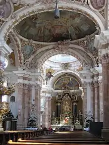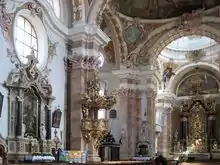 Frescele de pe plafon sunt pictate de Cosmas Damian Asam, iar stucatura a fost realizată de Egid Quirin Asam. Iconografia a fost realizată în stil baroc. Portretul Sfintei Fecioare Maria cu copilul Isus din altarul central este opera pictorului Lucas Cranach cel Bătrân.