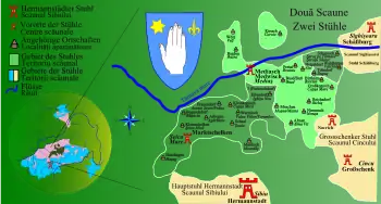 Începând cu anul 1315 cele Două Scaune au aplicat dreptul sibian, fără a constitui totuși împreună cu Sibiul o singură unitate administrativă. Prin alt privilegiu, din anul 1318, regele i-a scutit de serviciul militar pe sașii din Mediaș, Șeica Mare, Șeica Mică și din așezările aparținătoare (fapt ce dovedește că acestea constituiau încă o unitate aparte), le-a fixat censul Sf. Martin la 400 de mărci de argint bun și fin și le-a recomandat să se ghideze în chestiunile de judecată după dreptul sibian. Și în acest document este vorba doar despre o preluare a dreptului sibian. Cele Două Scaune au constituit și ulterior o uniune aparte, căci privilegiul din 1318 a fost reînnoit, până în secolul al XV-lea, în mai multe rânduri.[6]