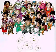 ![]() Personajele din Dragon Ball la sfârșitul seriei manga | |||
