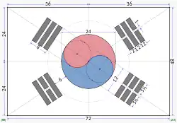 | Desen | Un steag alb cu un taegeuk roșu și albastru în mijloc, înconjurat de patru trigrame. |