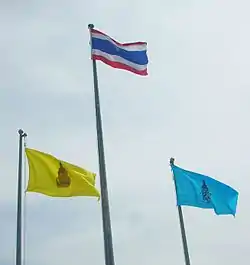 Drapeulul Regatului Thailandei este adesea arborat alături de cele două drapele regale ale Regelui și Reginei.