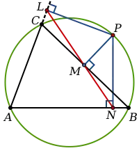 Demonstrație. Fie . Patrulaterele PLAN, PMNB și PLCM sunt inscriptibile.