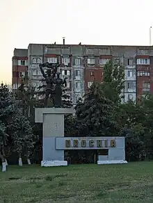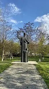 Monument la mormântul al orășenilor căzuți în Al Doilea Război Mondial.