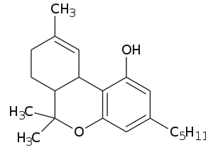 Dronabinolul este principala formă enantiomeră psihoactivă a (−)-trans-Δ⁹-tetrahidrocanabinolului întâlnit în cannabis.[5]