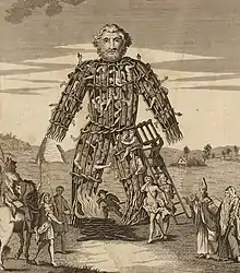 Scriitorii greci și romani au făcut adesea referire la druizi ca practicanți ai sacrificiului uman.[29] Cezar spune că cei care erau găsiți vinovați de furt sau alte infracțiuni erau considerați preferați ca victime de sacrificiu, dar atunci când criminalii erau puțini, și cei nevinovați puteau fi acceptați. O formă de sacrificiu menționată de Cezar era arderea de vii a victimelor într-o efigie mare din lemn, numită acum adesea om de răchită. O relatare diferită provine din Commenta Bernensia din secolul al X-lea, care a afirmat că sacrificiile aduse zeităților Teutates, Esus și Taranis erau prin înec, spânzurare și respectiv ardere (vezi moartea triplă).
