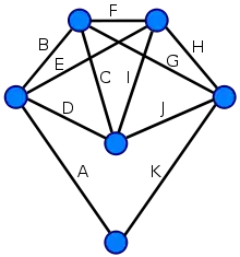 - Se alege orice nod v, și se urmează drumul muchiilor de la acel nod până la revenirea la v. Nu se poate ajunge la blocaj la orice alt nod decât v, deoarece faptul că toate nodurile au grad par asigură că, atunci când traseul intră în alt nod w trebuie să existe o muchie neutilizată care pleacă din w. Drumul astfel format este închis, dar se poate să nu acopere toate nodurile și muchiile grafului inițial.