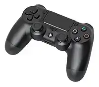 , L1, R1, L2, R2, L3, R3, Start, Select, Analog), schemă care se păstrază și astăzi, cu mici modificări. Până în iunie 2008 s-au vândut peste 28 de milioane de controllere (excluzându-le pe cele vândute odată cu consola).[3] DualShock 3 este primul controller wireless făcut de Sony, și combină capabilitățile Sixaxis cu senzori care detectează mișcările controllerului. DualShock 4 vine cu noutăți cum ar fi touchpadul, o intrare pentru căști și o boxă mono.[4] Este compatibil cu PlayStation 3, putând fi conectat la acesta doar prin intermediul unui cablu USB.