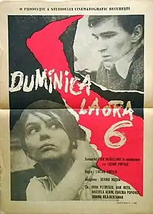 Duminică la ora 6 este un film dramatic psihologic[1] de dragoste românesc din 1966 regizat de Lucian Pintilie.[2] Scenariul este scris de Ion Mihăileanu (Mordechai Buchman) și Pintilie. Rolurile principale au fost interpretate de actorii Irina Petrescu, Dan Nuțu, Graziela Albini,[3] Eugenia Popovici și Constantin Cojocaru.