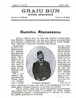 - „Dumitru Atanasescu, în Graiu bun, anul I, nr. 10, 1907, p. 1.