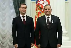 - „Dmitry Medvedev presented state decorations to space industry employees and veterans” [Dmitri Medvedev a acordat decorații de stat unor angajați și veterani ai industriei spațiale] (în engleză). Președinția Rusiei. . Accesat în .