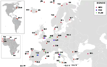 - șase stații NLES (Navigation Land Earth Station), două stații pentru fiecare satelit EGNOS, care au rolul de a transmite mesajele de navigație către sateliți.