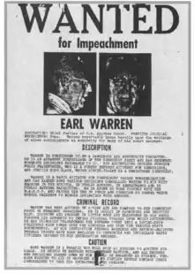 Earl Warren (n. , Los Angeles, California, SUA – d. , Washington, D.C., District of Columbia, SUA) a fost un avocat, politician și jurist american care a fost al 14-lea președinte al Curții Supreme a Statelor Unite(d) între 1953 și 1969. Curtea Warren(d) a prezidat într-o perioadă de schimbare radicală a jurisprudenței constituționale americane, care a fost recunoscută de mulți drept o „revoluție constituțională” în direcția liberală(d), Warren redactând opiniile majoritare în cazuri de referință precum Brown v. Board of Education(d) (1954), Reynolds v. Sims(d) (1964), Miranda v. Arizona(d) (1966) și Loving v. Virginia(d) (1967). Warren a condus și Comisia Warren(d), o comisie prezidențială(d) care a anchetat asasinarea în 1963 a președintelui John F. Kennedy. Warren a fost și guvernator al Californiei(d) din 1943 până în 1953 și este ultimul președinte al Curții Supreme care a ocupat o funcție aleasă înainte de nominalizarea la Curtea Supremă. Warren este în general considerat a fi unul dintre cei mai influenți judecători ai Curții Supreme și lideri politici din istoria Statelor Unite.