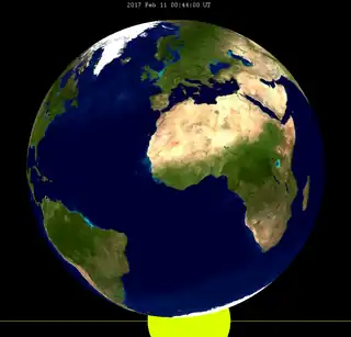 ![]() Vederea Pământului de pe Lună, în timpul fazei maxime a acestei eclipse |