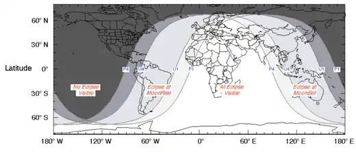 ![]() Harta mondială a vizibilității acestei eclipse. |