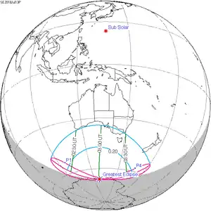 Este o eclipsă, parțial vizibilă din Australia de Sud, Victoria, Tasmania, Oceanul Indian, Coasta Budd.