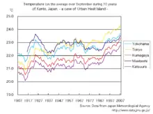 Insula de căldură urbană reprezintă fenomenul în care regiunile centrale care aparțin zonelor urbane prezintă temperaturi medii mai ridicate decât zonele asemănătoare din jur. [22] O mare parte din acest efect poate fi atribuit albedului scăzut din oraș , puterii de reflexie a unei suprafețe și a zonei extinse acoperite de clădiri pentru a absorbi radiațiile solare. [14] Suprafețele din beton, ciment și metal din zonele urbane tind să absoarbă energie termică în loc să o reflecte, având ca rezultat, temperaturi mult mai ridicate în aceste zone. Efectul insulei termice urbane arată o legătură favorabilă cu densitatea populației din orașul Baltimore, lucru desoperit de Brazel și alții. Efectul insulei termice are consecințe ecologice corespunzătoare asupra speciilor locale. [10] În orice caz, acest efect a fost observat doar în climele temperate.
