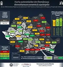 - „Drumul către creștere economică: PIB-ul pe cap de locuitor este cu 25% mai mare în județele care au cel puțin un tronson de autostradă față de județele fără autostradă”, Economedia.ro, , accesat în