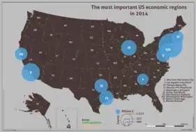 Economia Statelor Unite ale Americii este cea mai mare din lume. Produsul intern brut al Statelor Unite ale Americii a fost estimat la $17.15 trilioane în aprilie 2014 [11], aproximativ un sfert din produsul intern brut mondial [12][13] și $22 trilioane în 2020. Produsul intern brut ajustat la paritatea puterii de cumpărare este de asemenea mai mare decât al oricărei alte țări din lume.[14] Dolarul este cea mai folosită monedă în tranzacțiile internaționale și este cea mai importantă monedă de rezervă.[15] Câteva țări folosesc dolarul american ca monedă oficială iar altele ca moneda de facto.[16] SUA are o economie mixtă [17][18] și a menținut o creștere economică stabilă, o rată de șomaj moderată și nivele ridicate de cercetare.[19] Cei mai mari parteneri de comerț ai SUA sunt: Canada, China, Mexic, Japonia si Germania.[20]