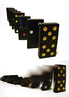 Un efect de domino sau o reacție în lanț este efectul cumulativ produs atunci când un eveniment declanșează un lanț de evenimente similare. [1] Termenul este cel mai cunoscut ca efect mecanic și este folosit ca analogie cu un rând de pietre de domino care cad pe rând.